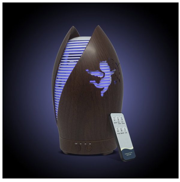 7 LED-es aroma diffúzor  távirányítóval / Ámor motívummal / 100 ml / sötétbarna
