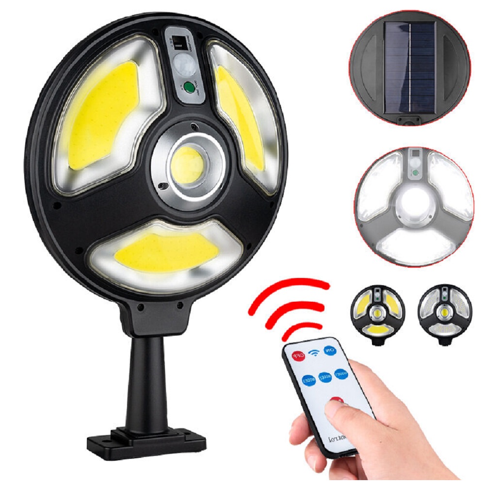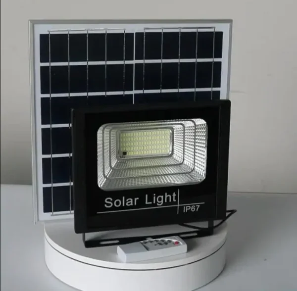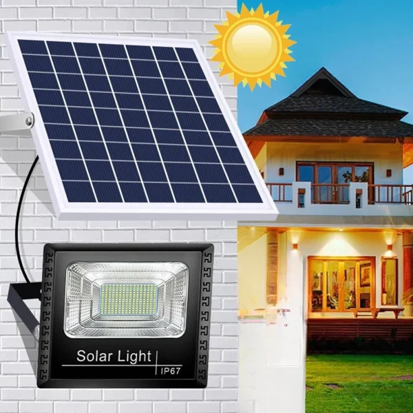 Garázsba, eresz alá, teraszra is felszerelhető napelemes lámpa – 100W kültéri LED reflektor különálló szolár panellel és állítható dőlésszöggel (BBV)