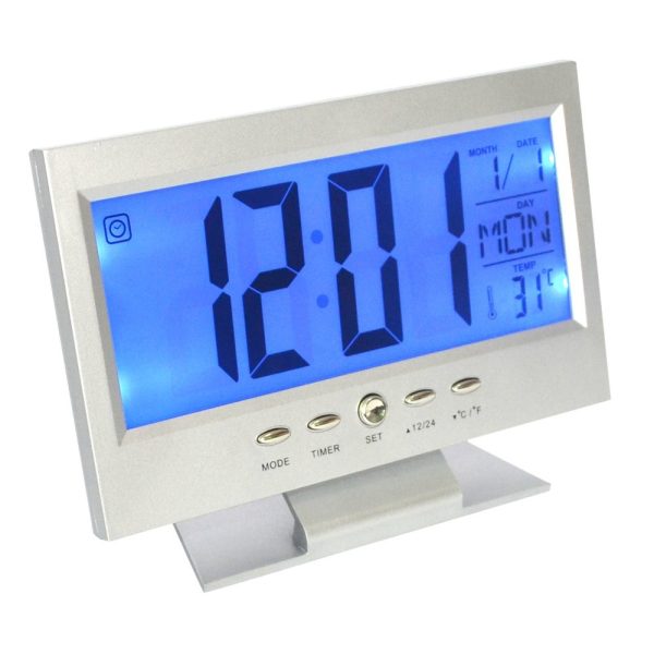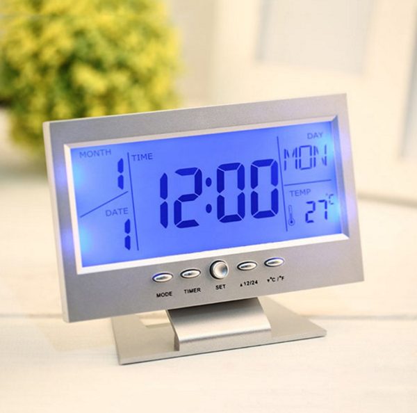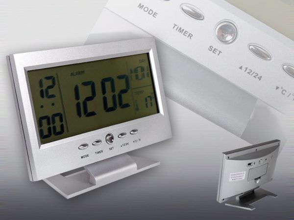 Hangra működő LCD kijelzős asztali óra
