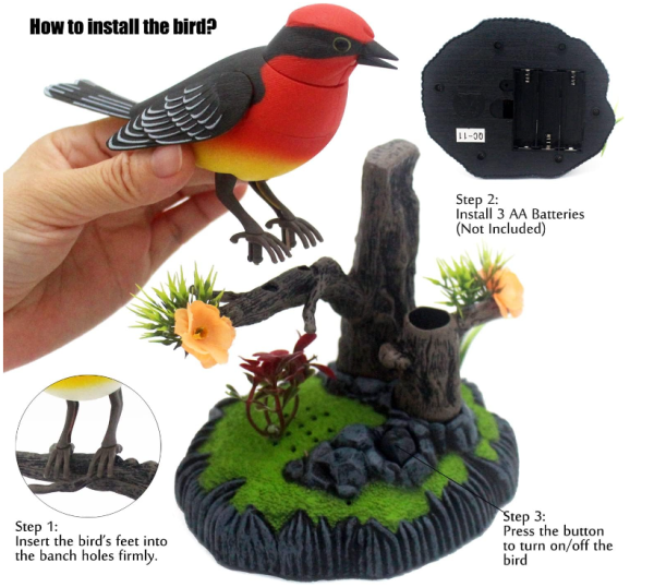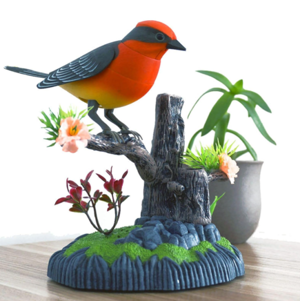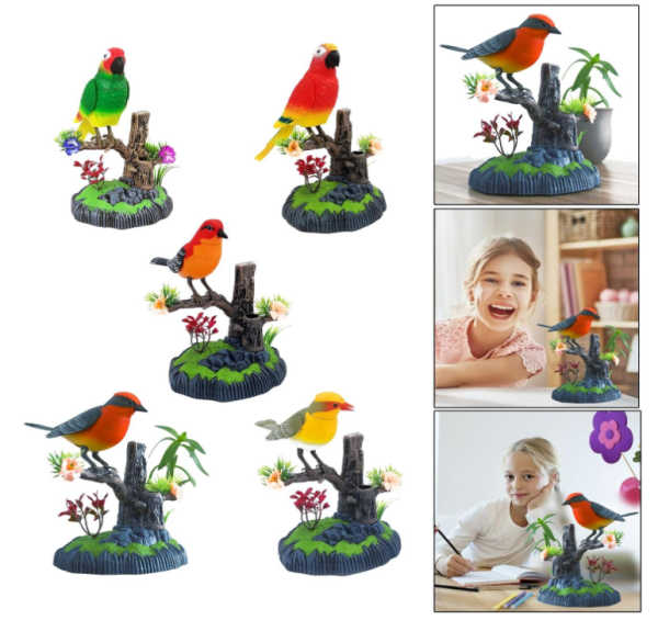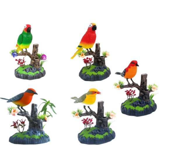 Hangvezérelt valósághűen csicsergő kismadaras toll és ceruzatartó (BBE)