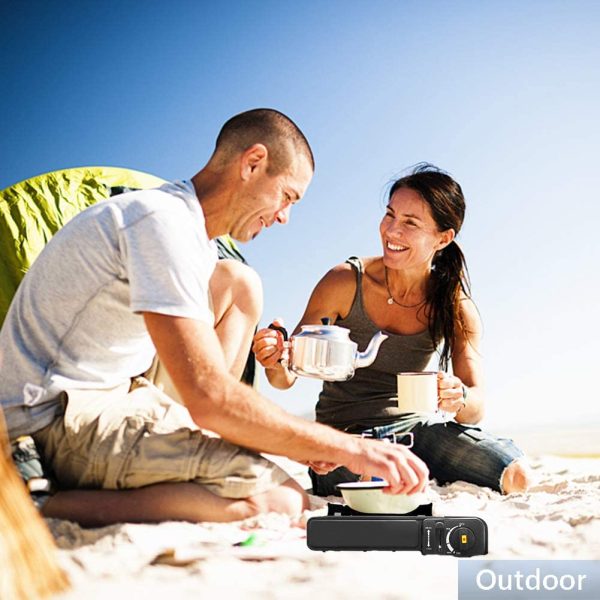 Hordozható kemping gázfőző alumínium égőfejjel és piezo automatikus gyújtóval (BBV)