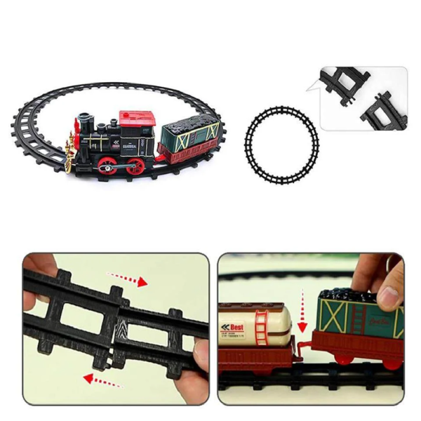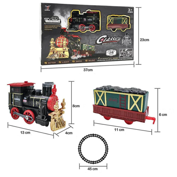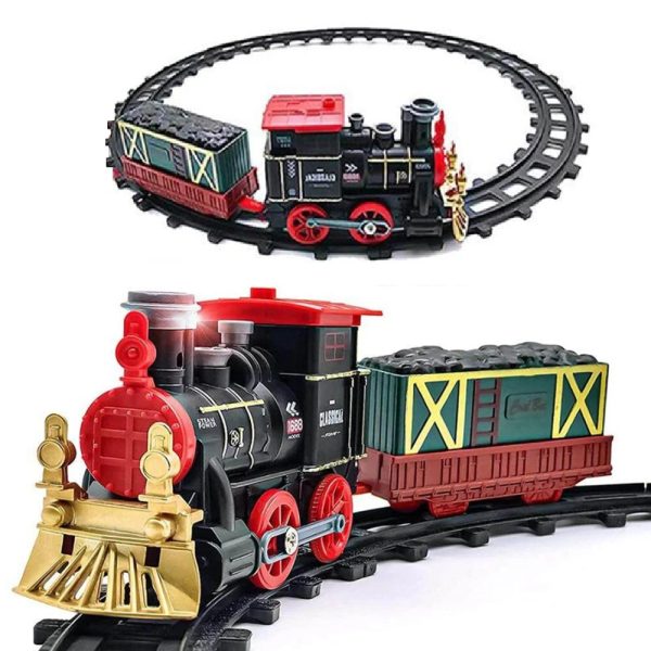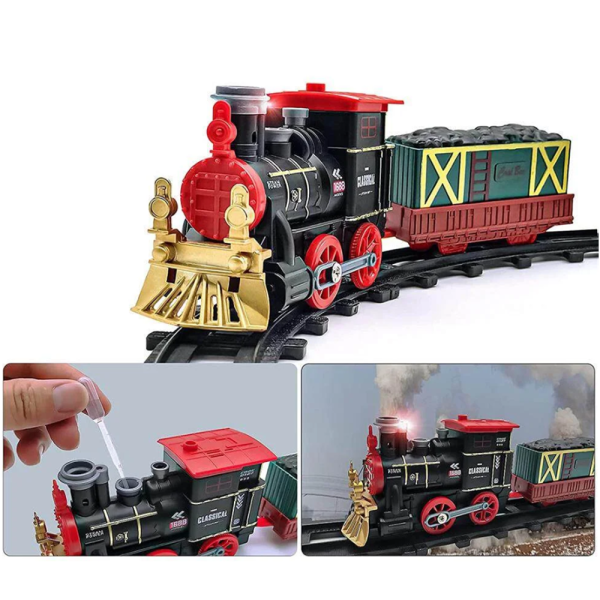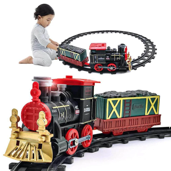 Karácsonyi retró gőzmozdonyos vonatkészlet gyerekeknek – fény- és hanghatásokkal, klasszikus pályaszettel, tökéletes ünnepi ajándék (BBJ)