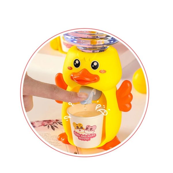 Kiskacsa formájú vízadagoló gyerekeknek – mechanikusan működő mini italadagoló papír poharakkal (BBJ)