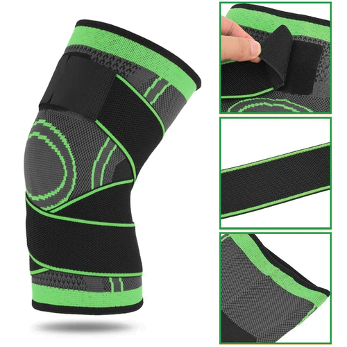 Kompressziós térdrögzítő állítható pántokkal sportoláshoz és térdfájdalmak ellen – zöld-fekete – L (BBM) (BBKM)