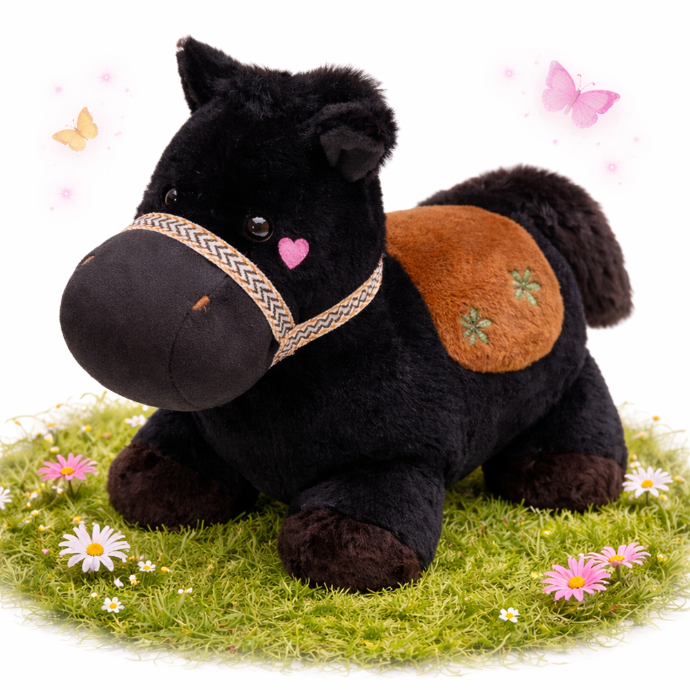 PufiPóni fekete plüss ló 20 cm – puha, ölelhető lovacska plüss játék gyerekeknek és ajándéknak (BBJ)