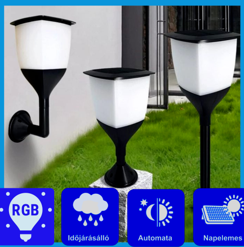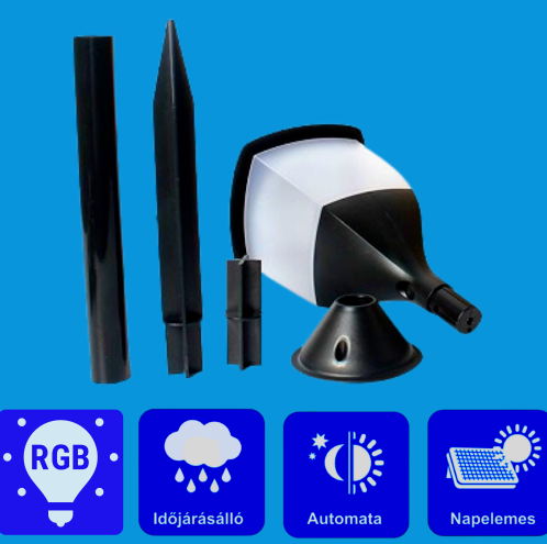 Napelemes RGB LED kerti lámpa 3 az 1-ben – Leszúrható vagy felszerelhető, beépített alkonykapcsolóval (BBV)