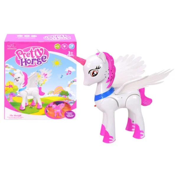 Pretty horse elemes pegazus mesebeli szárnykkal és hangeffektekkel – magától sétáló játék unikornis(BBJ)
