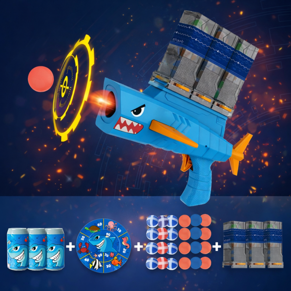 Készülj fel egy igazi akciódús cápás küldetésre! A SharkRiot Shark Attack labdakilövő játékpisztoly nem csak egy játék – ez egy pörgős célbalövős élmény, ami azonnal beindítja a versenyszellemet. Tökéletes választás, ha egy olyan játékot keresel, ami leköti a gyerekeket és közben mozgásra is ösztönzi őket! 🎯