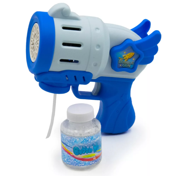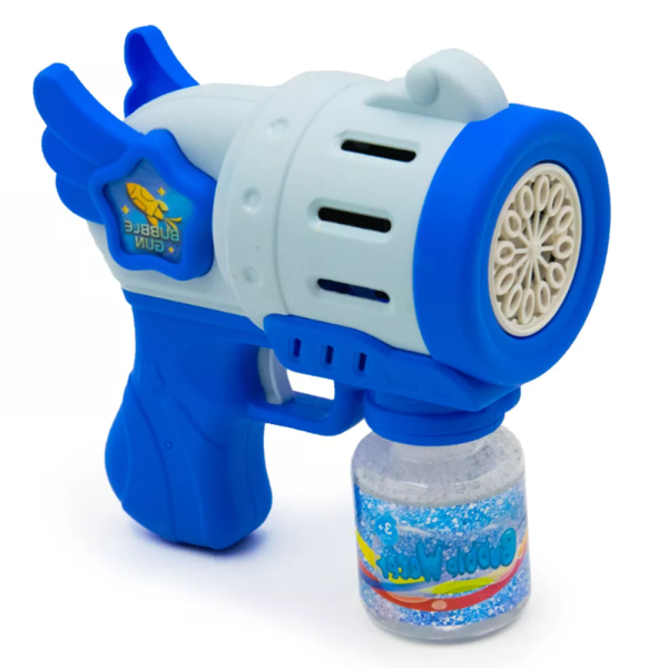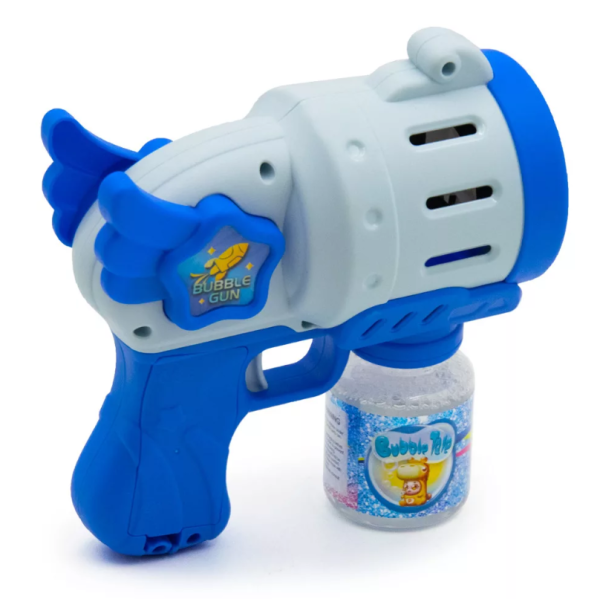 Szárnyakkal díszített kék színű automata buborékfújó pisztoly (BBJ)