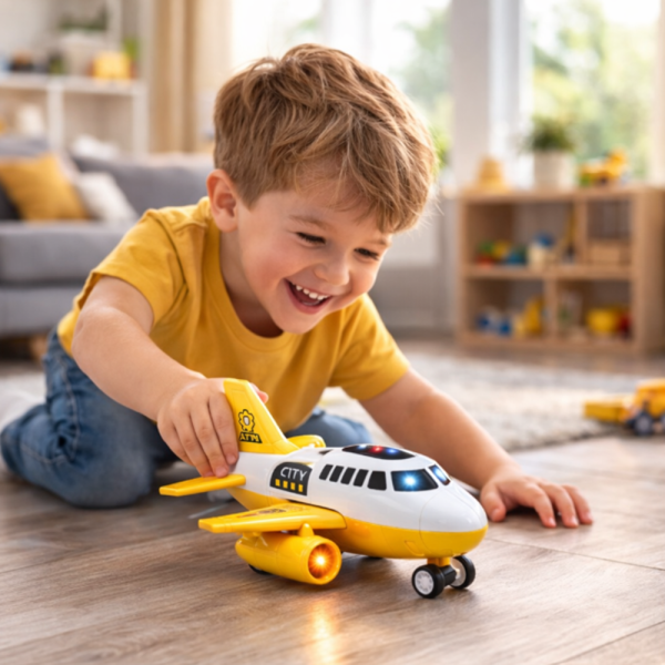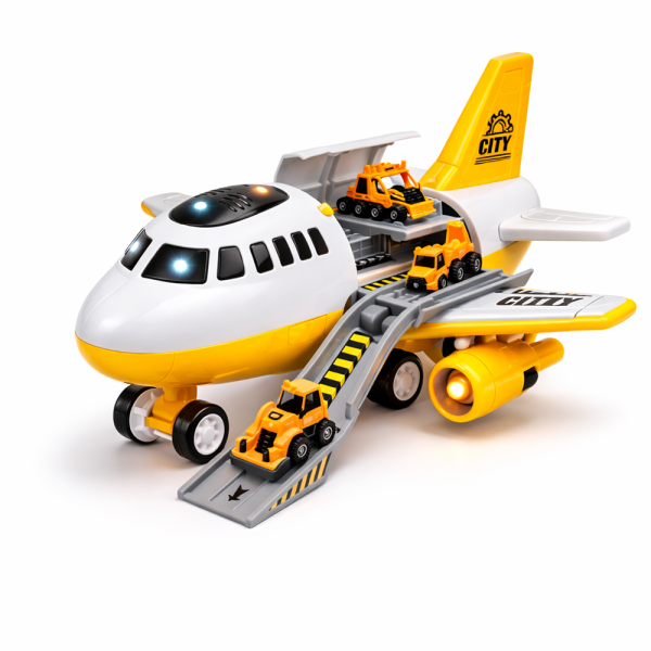Szárnyas Kommandó teherszállító repülő – fény- és hanghatásos cargo játékszett gyerekeknek, sárga (BBJ)