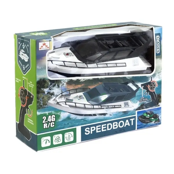 Távirányítós játék motorcsónak szuper menő megjelenésű, 2.4 GHz távirányítóval és tölthető akkumulátorral – 28 x 10 x 12 cm (BBMJ)