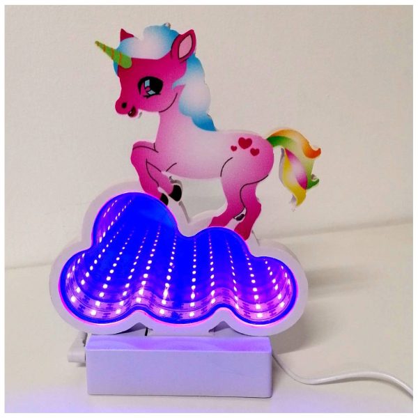 Tükrös LED éjszakai fény – végtelen LED folyosó felhőn álló unikornis mintával (BBM)