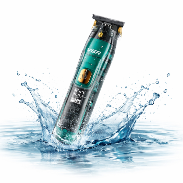 VGR V-961 prémium akkus haj- és szakállvágó – vezeték nélküli trimmer 4 vezetőfésű 1/3/5/7 mm – digitális kijelzővel, átlátszó dizájn (BBD)
